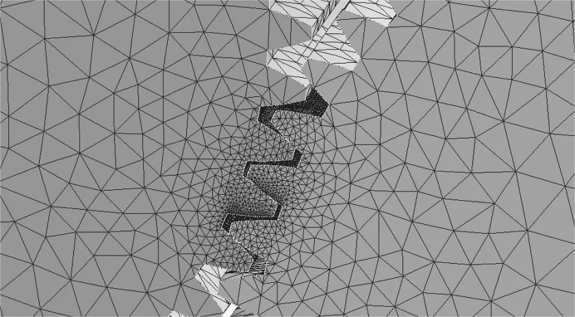 在 SolidWorks 中對(duì)同步齒輪進(jìn)行建模并調(diào)整,確保同步齒輪不會(huì)出現(xiàn)干涉。為了提高仿真精度和數(shù)據(jù)的可靠性,對(duì)靜強(qiáng)度仿真過(guò)程中參與嚙合的幾對(duì)輪齒表面網(wǎng)格化。齒面網(wǎng)格細(xì)化模型如圖5所示。